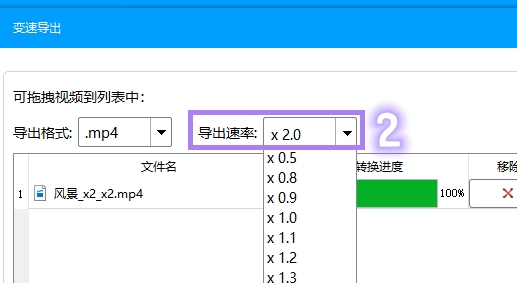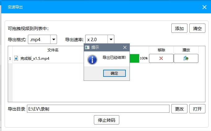 设置都完成后,点击【开始导出】按钮,软件将开始按照你设定的倍速进行视频转码。请耐心等待转码完成。