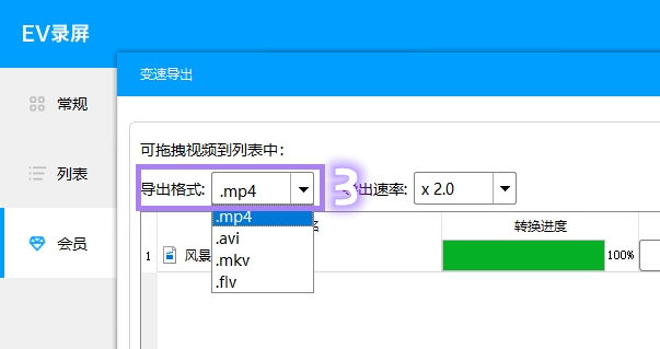 变速导出功能提供了四种可储存格式供你选择,你可以根据个人需求选择适合你的视频格式。