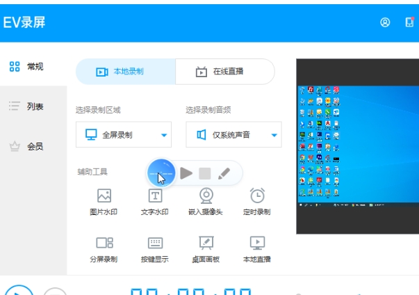 在声音设置中,您可以选择是否录制麦克风声音、系统声音或两者都录制。点击三角形图标开始录制。录制过程中,如果需要结束录制,点击旁边的正方形图标即可。