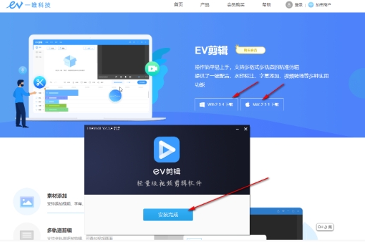 根据软件的提示,选择下载EV剪辑工具。下载完成后,按照安装向导进行安装。