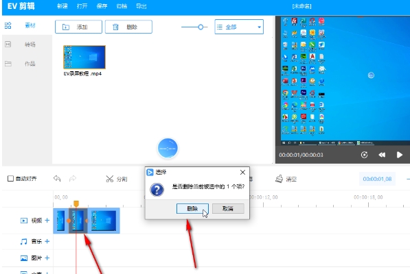 点击“剪辑”按钮,如果您还没有安装EV剪辑工具,软件会提示您下载并安装。