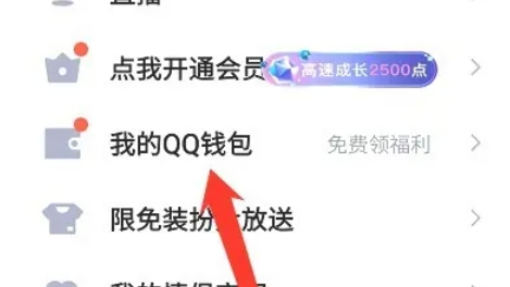 在弹出的菜单中,选择并点击【钱包】选项。
