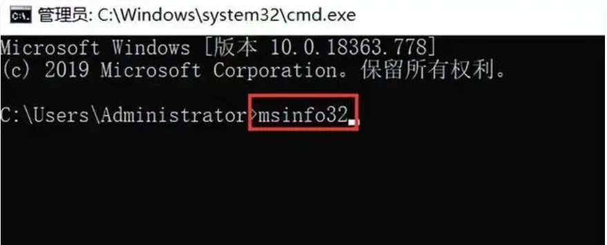 步骤2:在打开的管理员窗口中,输入【msinfo32】,按回车键【Enter】。