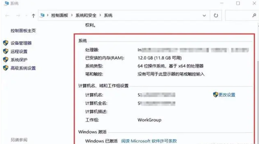 步骤3:在系统页面中,你可以看到基本的系统信息,包括处理器、安装的内存等。