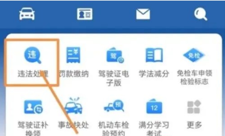 1、打开你的交管12123软件,在主界面中找到并点击“违法处理”选项。