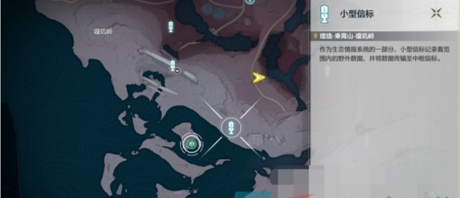 往地图东北方向(右上角)看,找到最后一个机关柱。