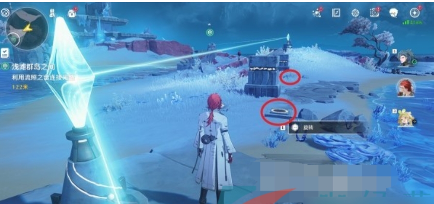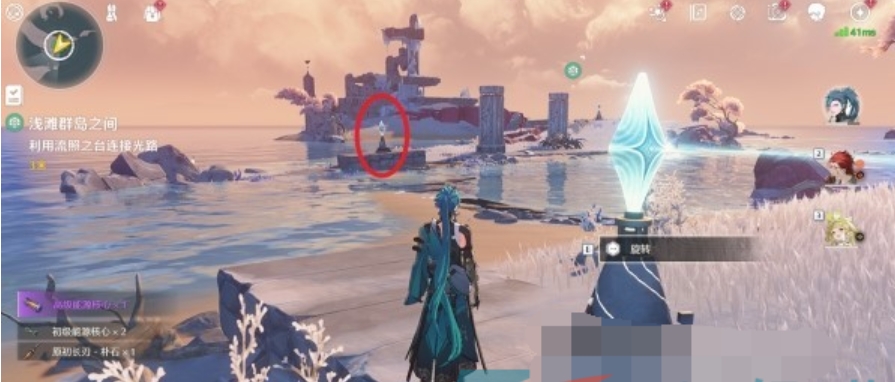 往地图西南方向(左下方)看,旋转机关柱2次将其点亮。
