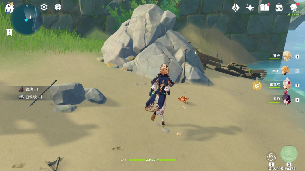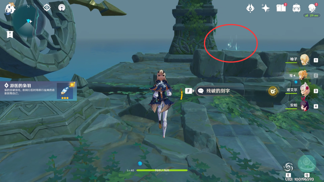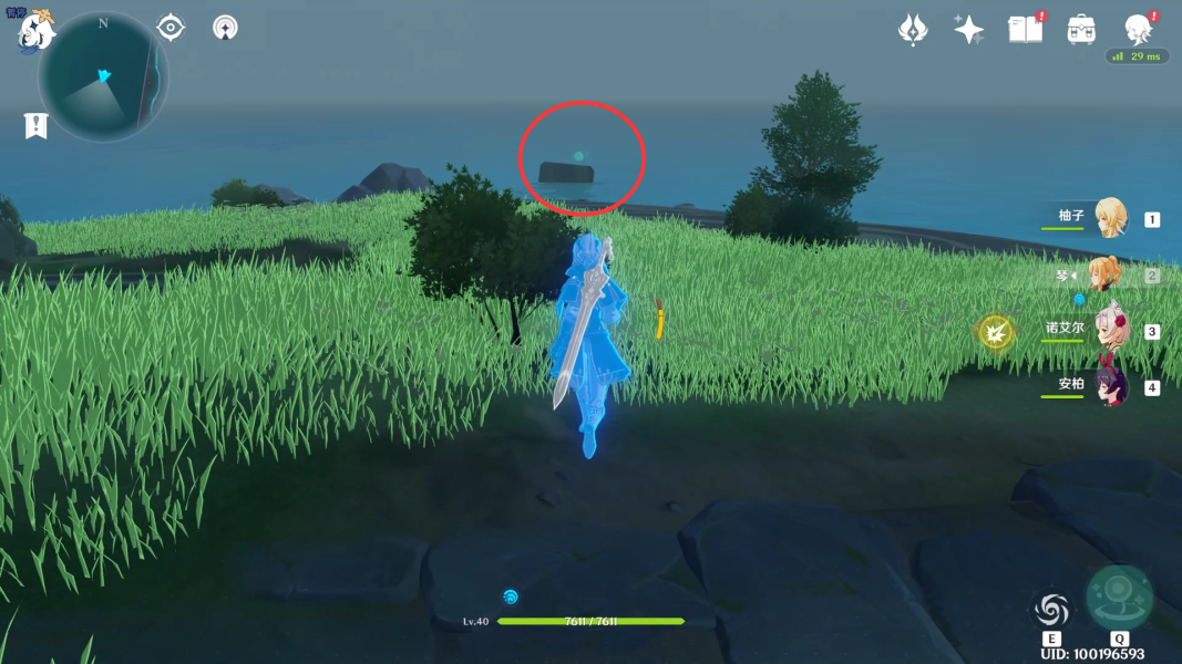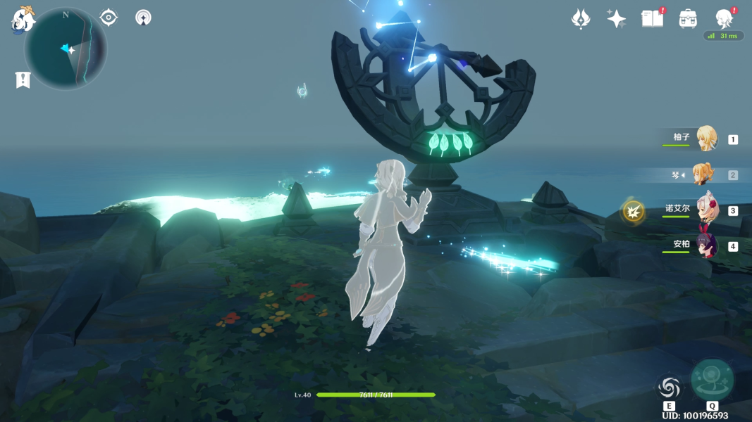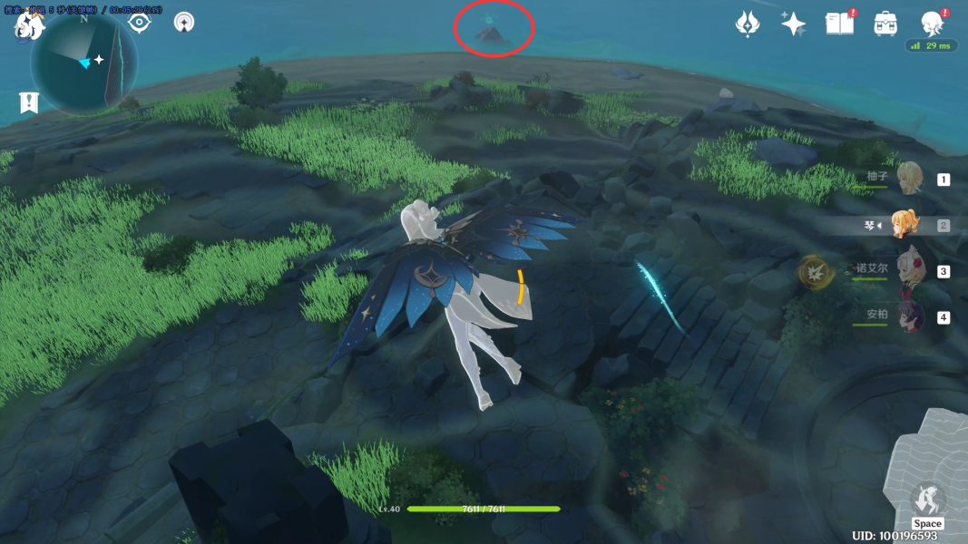 注意最后一个绿色光球是在水面上的,需要岩属性主角的荒星当垫脚的才能击破,或者冰属性角色在水面上制造出一块冰面)
