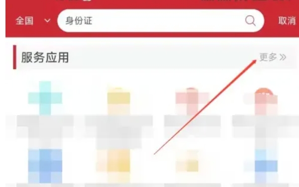 在搜索结果页面,点击“更多”以查看更多与身份证相关的服务选项。接着,在更多页面中,寻找并点击“申领居民身份证”或类似的选项。