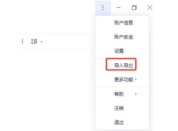 1、打开有道云笔记软件,点击右上角的三个点菜单按钮,然后点击导入导出选项。