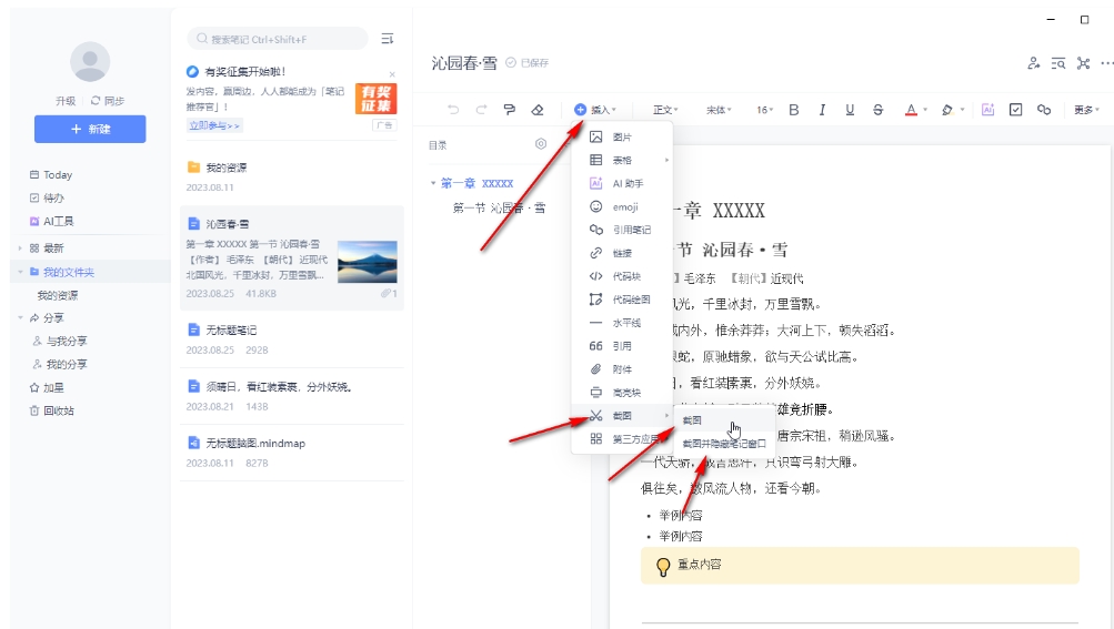 有道云笔记怎么截图?