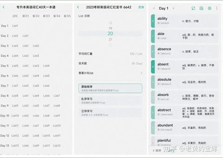 该软件操作简便,用户可轻松上手。它融入了艾宾浩斯记忆法,支持用户自定义学习计划,包括设置List总数,并自动计算平均词汇量和总天数,为用户提供科学的学习规划。