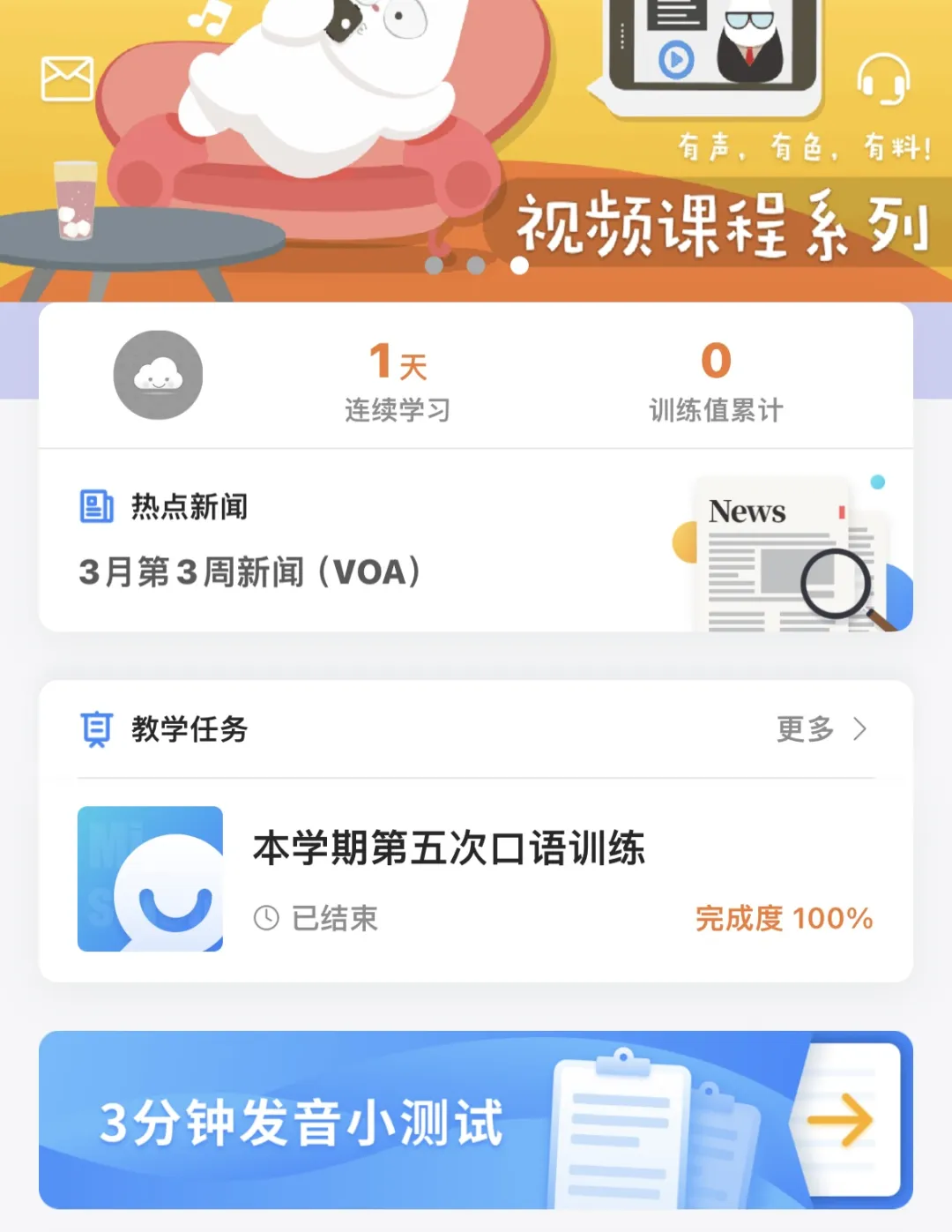 FiF口语训练平台:教师将在此平台上发布学习任务,学生需积极参与英语口语练习,并完成每日打卡,以有效提升个人的英语口语能力。
