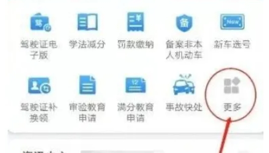 在主界面上,找到并点击【更多】按钮,这个按钮通常位于屏幕下方或侧边栏中,用于展开更多的业务办理选项。在展开的菜单中,寻找与车辆管理相关的部分,然后找到并点击【新车选号】或类似名称的选项。