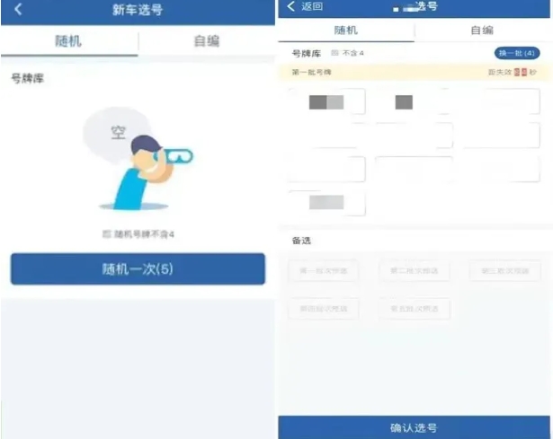 随机选号:系统会随机生成一定数量的号牌号码供你选择,你可以在这些号码中挑选一个你喜欢的。