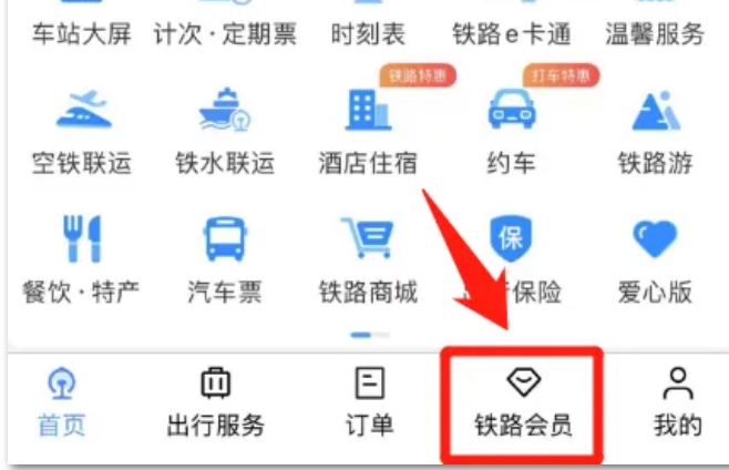 在App首页或底部导航栏中找到“铁路会员”选项并点击进入。