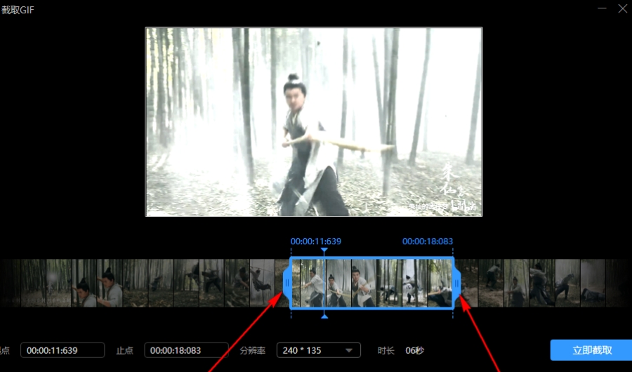 3.进入到截取页面后,用鼠标拖动一下时间轴,左右滑动时间轴进行截取。