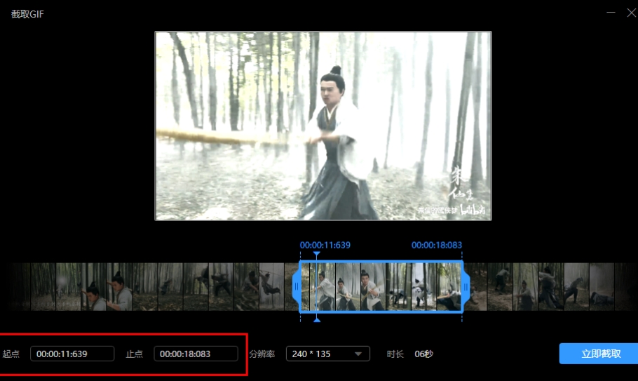 4.然后在下方的【起点】和【止点】也可以输入具体的截取时间。