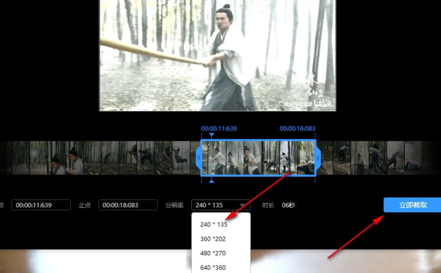 5.将【分辨率】下拉按钮点击打开,选择合适的分辨率,并点击【立即截取】按钮即可截取。