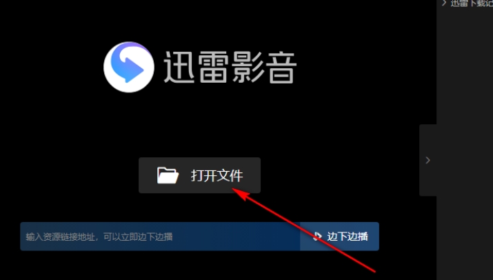 1.将迅雷影音双击打开之后,我们将页面上的【打开文件】按钮进行点击,即可进入到电脑存放文件夹的窗口中。