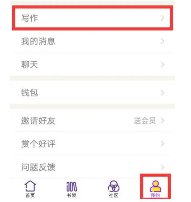 1、在话本小说应用的主界面点击“我的”,选择“写作”选项。