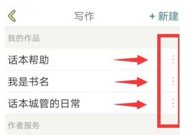 2、在“写作”界面中,你会看到你所有已创作的小说列表,选择你想要删除的小说,点击旁边的“三个点”图标。