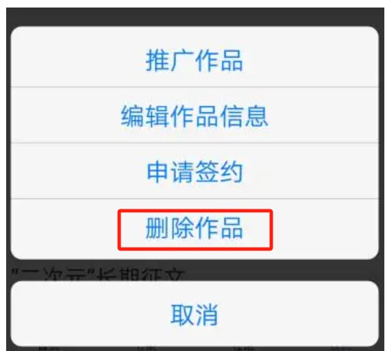 3、选择“删除作品”即可。