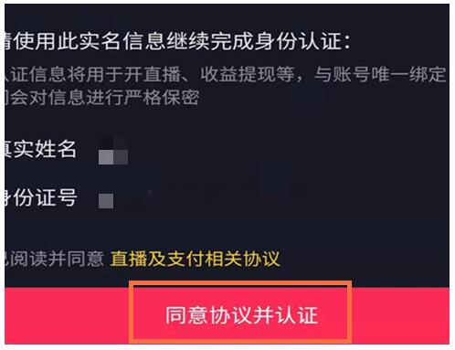 3、会跳转到实名认证页面,点击“同意协议并认证”即可开通直播功能。