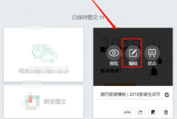 在个人界面中,选中“我的图文”,点击下方任意一个推送模板中的“编辑”按钮,进入图文编辑界面。
