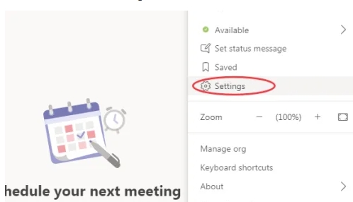 在个人资料菜单中,找到并点击【settings】(设置)选项。这将打开Teams的设置窗口。