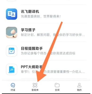 1、打开讯飞星火软件,点击主界面上的“智能体”图标。