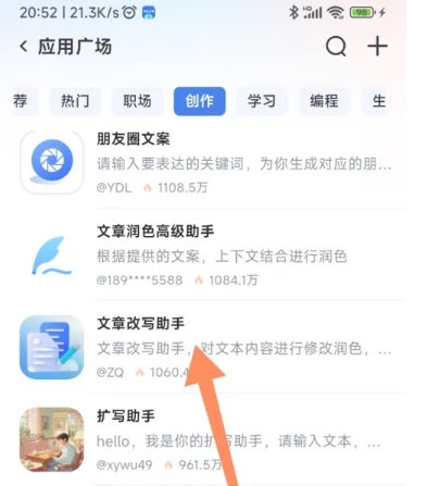 2、然后找到并点击“文章改写助手”图标来进入文章改写功能。