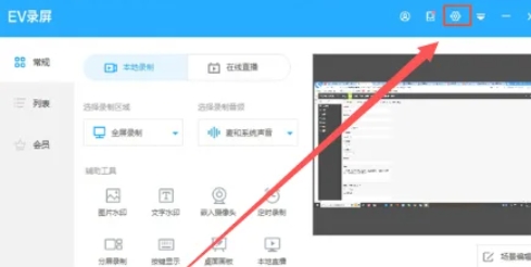 在EV录屏软件的主界面中,找到并点击右上角的设置图标。这将打开软件的设置页面。