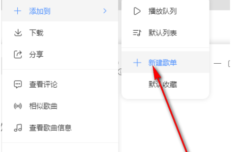3.然后在复选项中可以看到有一个【新建歌单】,点击打开。