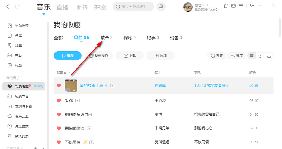 5.然后直接点击上方的【歌单】选项,如图所示。