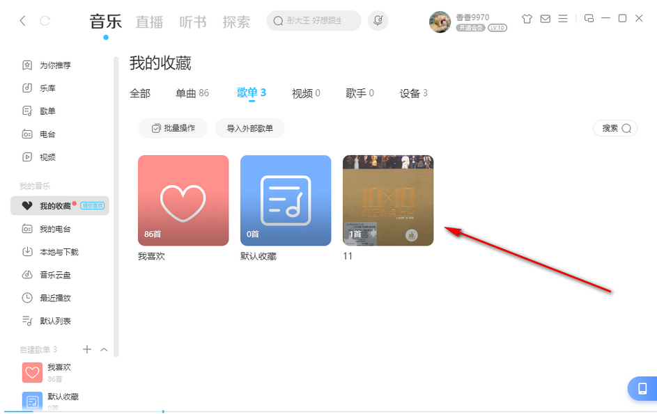 6.在歌单页面中的就可以看到刚刚新建的歌单了。
