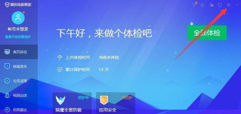 进入腾讯电脑管家中,点击右侧上方的横线(主菜单)功能打开。