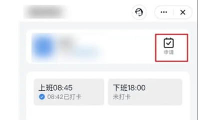 在考勤打卡页面中,找到并点击【申请】按钮。这个按钮通常位于页面的右上角或底部。