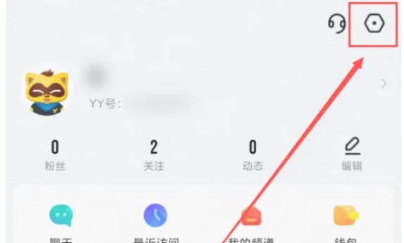在“个人中心”页面中,点击右上角的齿轮标识,即设置图标,进入YY语音App的设置页面。