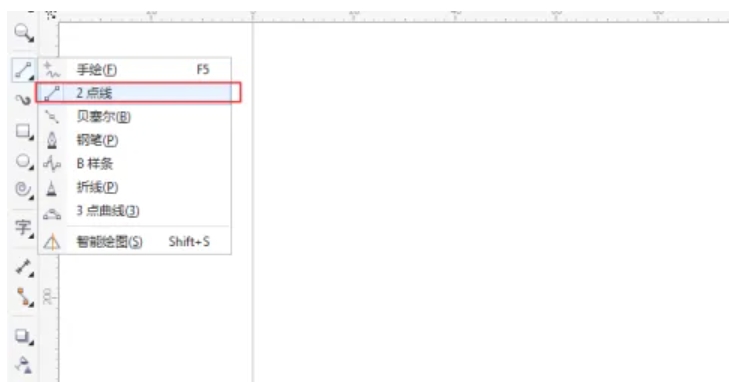 选择“两点直线工具”,在画布上绘制一条直线。按住Ctrl键可以绘制水平或垂直的直线。