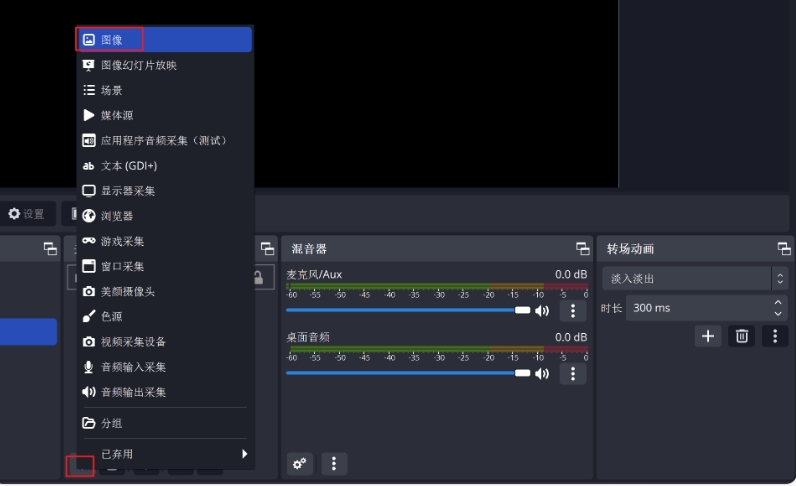 在“来源”面板中,再次点击左下角的“+”号按钮,选择“图像”或“媒体源”以添加背景。