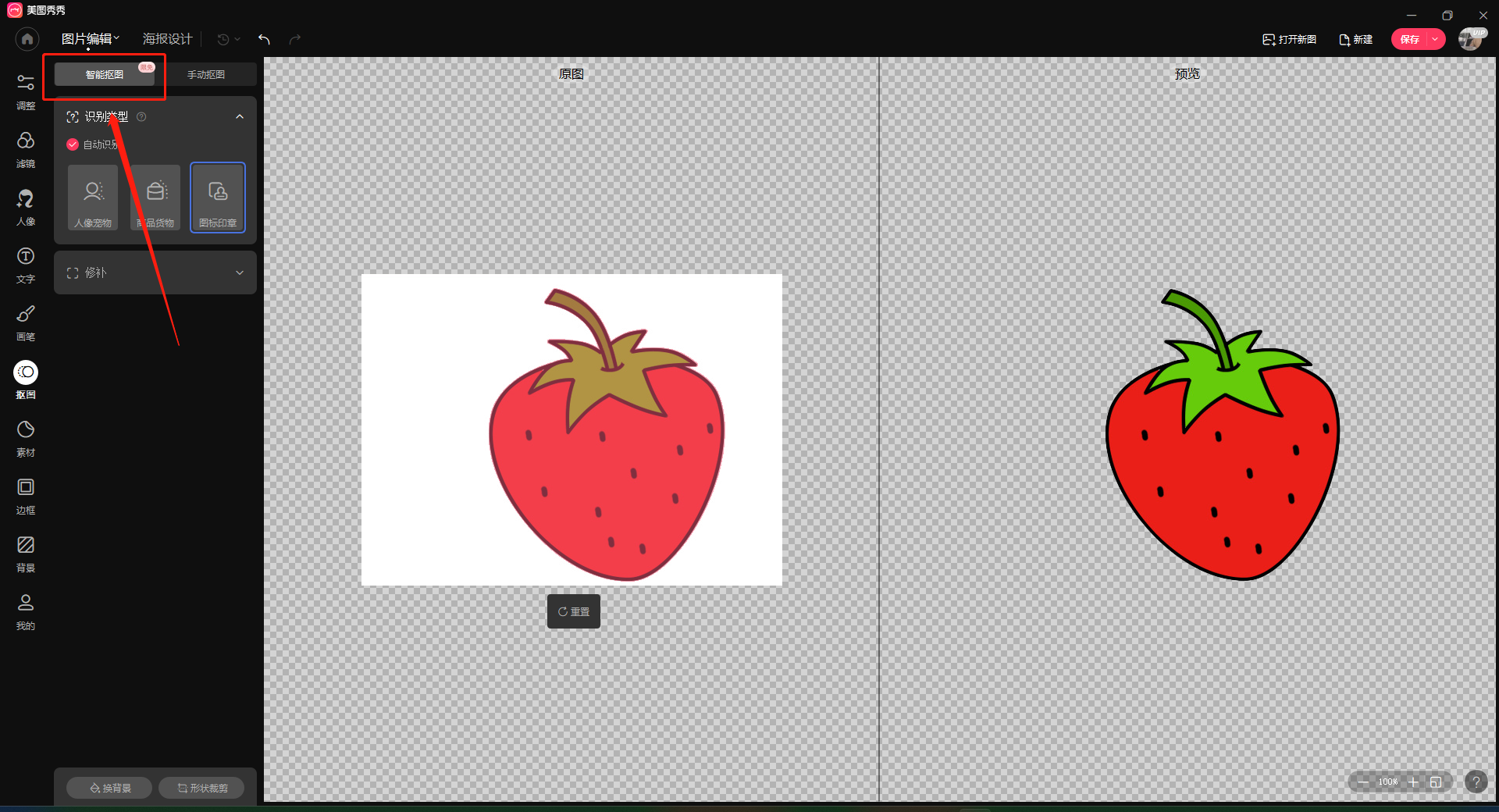 3、选择要抠图的图片,点击智能抠图便可以了,还可以进行手动调整。