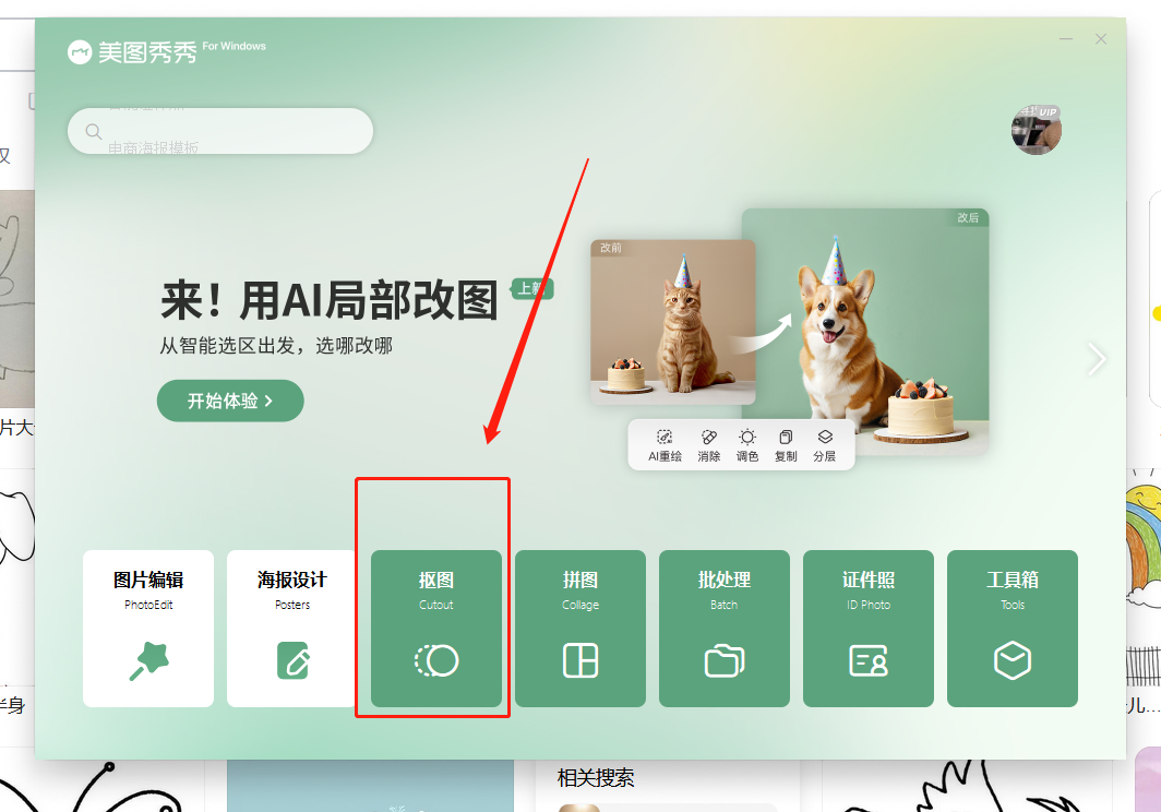 1、打开美图秀秀,并点击抠图。