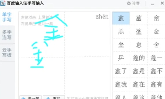 启用手写输入后,你可以使用鼠标或触摸屏来书写汉字。书写的汉字会在右侧显示待选的文字,你可以点击正确的文字来完成输入。