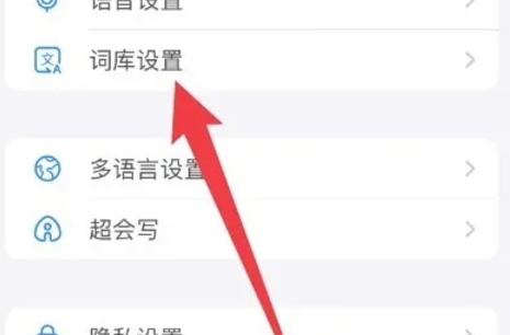 在设置页面中,浏览并找到“词库设置”选项。这个选项通常与输入法的词库管理、个性化设置等相关。