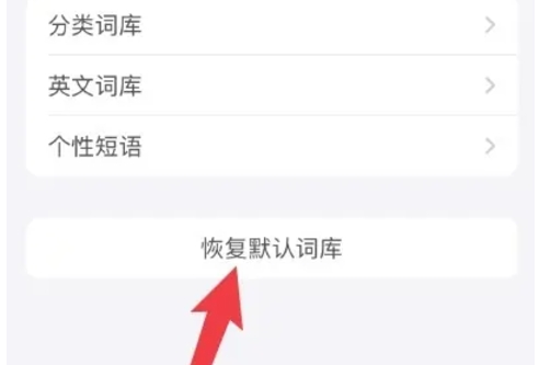 点击词库设置页面后,找到并点击“恢复默认词库”选项。这个操作将清除当前输入法的所有个性化词汇和历史输入记录,恢复为初始状态。