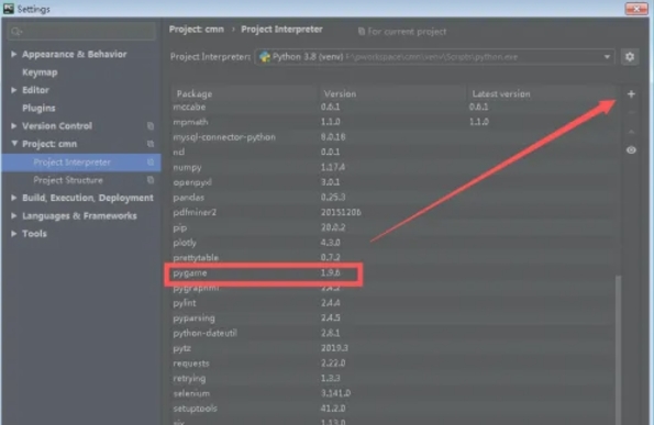 打开PyCharm工具。选择File -> Settings(或Preferences,取决于你的操作系统)。在设置窗口中,选择Project: <你的项目名> -> Python Interpreter。查看右侧的已安装包列表,确认是否包含pygame。如果没有,点击右下角的+号按钮,搜索pygame并安装它。