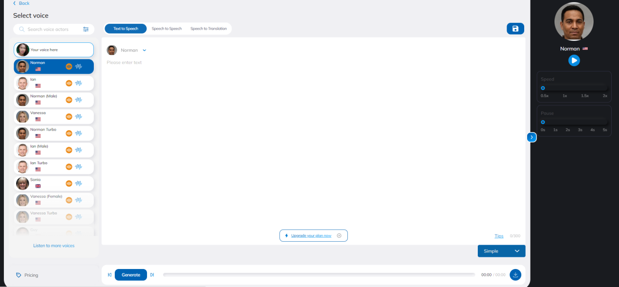 只需上传录音并选择要转换为的声音即可