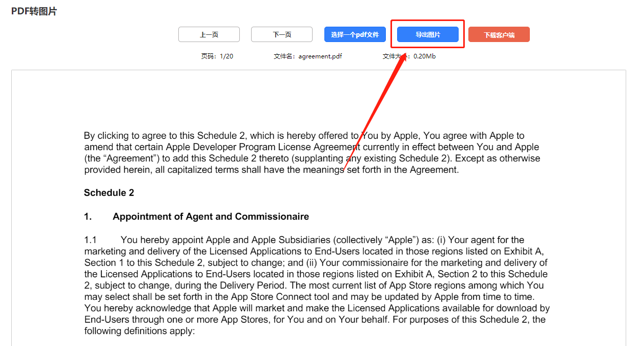 Step 3、导入后,点击【导出图片】就能成功将pdf免费在线转换成图片了。