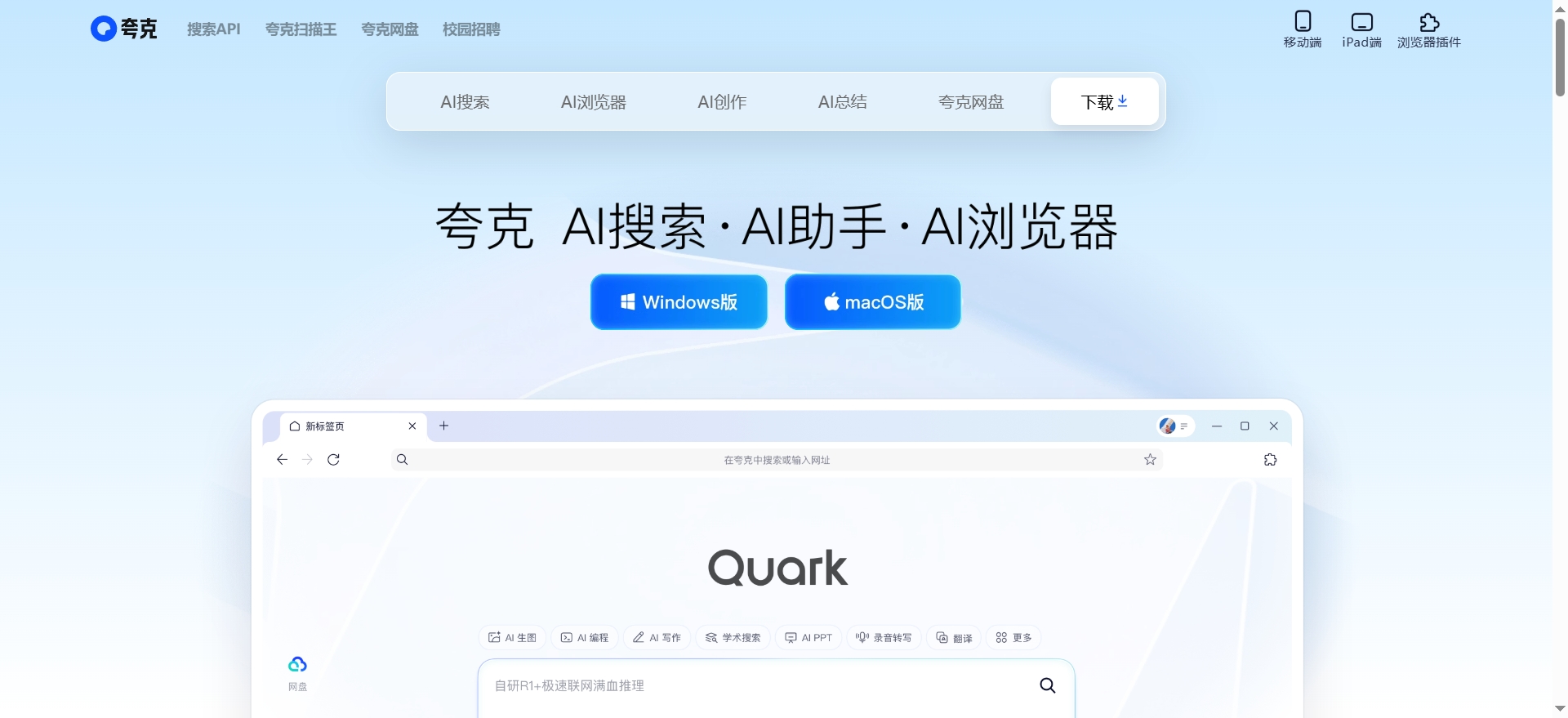 夸克浏览器网页版是夸克浏览器推出的一个在线浏览平台,用户可以通过浏览器直接访问,无需下载安装客户端软件。夸克浏览器网页版凭借其便捷的访问方式、丰富的功能和良好的用户体验,为用户提供了安全、高效的上网服务,是用户在不同设备上浏览网页的理想选择之一。